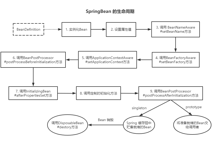 ## 控制反转(Inversion of Control, IoC) * 传统开发模式:对象的创建、依赖管理和生命周期由开发者手动控制(例如通过 new 关键字实例化对象)。 * IoC 模式:将对象的创建和依赖关系的控制权交给 IoC 容器(由框架管理),开发者只需声明需要什么对象,而不是手动创建它们。 * 核心思想:“好莱坞原则”(Don’t call us, we’ll call you)——框架负责调用你的代码,而不是你调用框架。 ### IoC 解决的问题 * 耦合度高:传统代码中,类直接依赖具体实现(如 new UserServiceImpl()),难以替换或修改依赖。 * 代码冗余:重复的创建和组装对象代码。 * 可测试性差:难以通过模拟依赖进行单元测试。 ## 依赖注入(Dependency Injection, DI) * DI 是 IoC 的具体实现方式:通过容器将对象所依赖的其他对象自动注入(传递)给它,而不是由对象自己创建依赖。 * 核心目标:解耦,让类只关注自身逻辑,而不关心如何获取依赖。 ### 依赖注入 * 构造函数注入 * Setter 方法注入 * 字段注入(通过注解) ## Spring IoC 容器 容器的核心角色 * Bean:由 Spring 容器管理的对象称为 Bean。 * IoC 容器:负责创建 Bean、管理 Bean 的依赖关系及生命周期。 * 核心接口: * BeanFactory:基础容器,提供基本的依赖注入功能。 * ApplicationContext:扩展自 BeanFactory,提供企业级功能(如国际化、事件发布等)。 ### 配置方式 * XML 配置(传统方式) 在 XML 文件中定义 Bean 及其依赖: ``` <bean id="userRepository" class="com.example.UserRepositoryImpl"/> <bean id="userService" class="com.example.UserService"> <constructor-arg ref="userRepository"/> </bean> ``` * Java 注解配置(现代主流) 使用 @Component、@Service 等注解标记 Bean,@Autowired 注入依赖: ``` @Service public class UserService { private final UserRepository userRepository; @Autowired public UserService(UserRepository userRepository) { this.userRepository = userRepository; } } ``` * Java Config 配置 通过 @Configuration 和 @Bean 注解显式定义 Bean: ``` @Configuration public class AppConfig { @Bean public UserRepository userRepository() { return new UserRepositoryImpl(); } @Bean public UserService userService() { return new UserService(userRepository()); } } ``` ## 依赖注入的优势 * 降低耦合度:类不直接依赖具体实现,而是依赖接口。 * 提高可维护性:修改依赖时只需调整配置,无需改动业务代码。 * 便于测试:可通过 Mock 对象注入依赖,轻松实现单元测试。 * 代码更简洁:避免手动管理对象创建和依赖组装。 ## springbean的生命周期  1. **Bean 的实例化** * 触发时机:容器启动时(单例 Bean 默认预加载)或首次请求时(如原型 Bean 或延迟加载 Bean)。 * 实现方式: * 通过反射调用无参构造函数。 * 若定义了工厂方法(如 @Bean 方法或 XML 的 factory-method),则调用工厂方法创建实例。 2. **设置属性值(依赖注入)** * 方式: * 通过构造函数注入(推荐)。 * 通过 Setter 方法或字段注入(如 @Autowired)。 * 容器行为:根据 Bean 定义解析依赖关系,递归完成所有依赖的注入。 3. **Aware 接口回调** Spring 提供了一系列 Aware 接口,用于让 Bean 感知容器环境: * BeanNameAware * 调用 setBeanName(String name),传入 Bean 的 ID/名称。 * 用途:获取 Bean 在容器中的标识。 * BeanFactoryAware * 调用 setBeanFactory(BeanFactory beanFactory),传入 BeanFactory 实例。 * 用途:直接操作容器或获取其他 Bean。 * ApplicationContextAware * 调用 setApplicationContext(ApplicationContext context),传入应用上下文。 * 用途:访问资源、国际化、事件发布等高级功能。 4. **BeanPostProcessor 的前置处理** * 方法:postProcessBeforeInitialization(Object bean, String beanName) * 作用:在 Bean 初始化(如 @PostConstruct)之前,对 Bean 实例进行修改或增强。 * 典型应用:生成代理对象(如 AOP)、属性校验等。 5. **初始化阶段** * InitializingBean 接口 * 调用 afterPropertiesSet(),确保所有依赖注入完成后执行自定义逻辑。 * 自定义初始化方法 * 通过 @PostConstruct 注解、XML 的 init-method 或 @Bean(initMethod = "xxx") 定义。 * 执行顺序:@PostConstruct → afterPropertiesSet() → init-method。 6. **BeanPostProcessor 的后置处理** * 方法:postProcessAfterInitialization(Object bean, String beanName) * 作用:在 Bean 初始化之后进一步处理,例如生成最终的代理对象。 * 典型应用:AOP 动态代理的最终生成在此阶段完成。 7. **Bean 的使用** * 单例(Singleton):Bean 实例被缓存,后续请求直接返回同一对象。 * 原型(Prototype):每次请求返回新实例,容器不管理其销毁。 ## Bean 的销毁阶段 当容器关闭(如调用 close())时,销毁单例 Bean: 1. @PreDestroy 注解方法:标记销毁前的清理逻辑。 2. DisposableBean 接口:调用 destroy() 方法。 3. 自定义销毁方法:通过 XML 的 destroy-method 或 @Bean(destroyMethod = "xxx") 定义。 执行顺序:@PreDestroy → destroy() → destroy-method。 ## 三级缓存 Spring 容器内部维护三个核心缓存(Map 结构): | 缓存名称 | 存储内容 | 作用 | |-----------------------|--------------------------------|-----------------------------------| | singletonObjects | 完全初始化好的单例 Bean(一级缓存) | 存放可直接使用的最终 Bean | | earlySingletonObjects | 提前暴露的“早期引用”(二级缓存) | 解决循环依赖时临时存放半成品 Bean | | singletonFactories | Bean 的工厂对象(ObjectFactory,三级缓存) | 生成原始 Bean 或代理对象的工厂,确保 AOP 等扩展的正确性 |